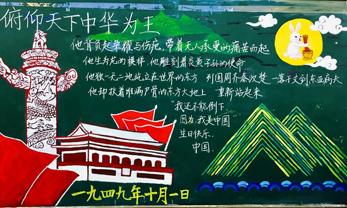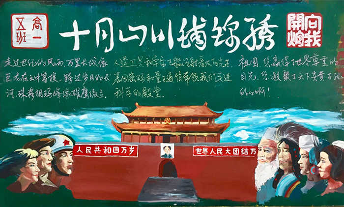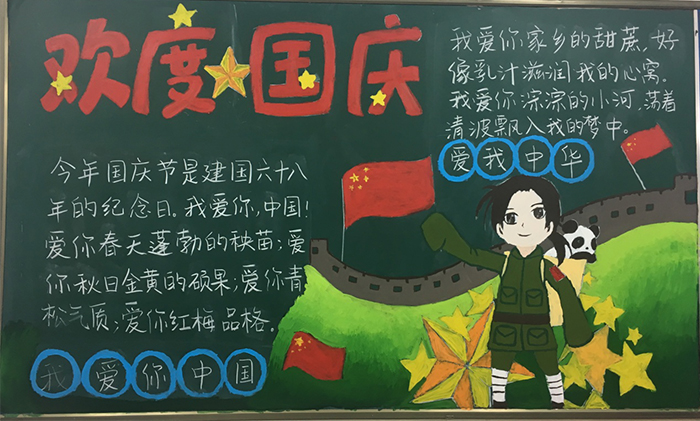为庆祝祖国六十八周年华诞、喜迎十九大的召开,进一步弘扬爱国主义传统,展示国家发展成就,我校组织开展了以“喜迎国庆”为主题的黑板报评比活动。
