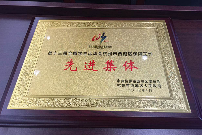 2017年10月16日上午,西湖区召开第十三届全国学生运动会总结表彰大会。我校被西湖区政府评为第十三届全国学生运动会杭州市西湖区保障工作先进集体。
