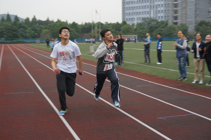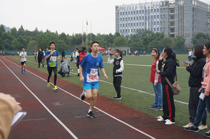 10月19日早晨八点十几分,随着一声炮响,高二的赛事随着男子1500米展开了。天气十分凉爽,徐徐微风给运动员们创造了良好的天气条件。1500米的路程本显得十分漫长,但在一次次脚步声中最终被浓缩成了七八分钟的短暂。期间不断地反超和加速使这场比赛充满看点。