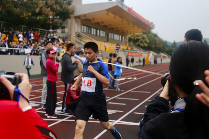 答:本来我们想保七争六的,因为我们还有两百米,大家都很虚。我们班是最外道,所以压力也小一点,然后我们前面什么人也没有,我就一个人拼命地跑拼命地跑,甩后面一连!