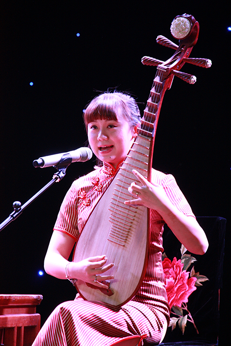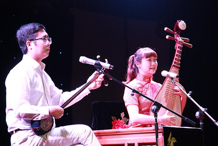 接下来一段传统评弹《庵堂认母》,仿佛把我们拉回了旧中国时代,领略了一番纯正的传统中国江南的艺术魅力。再是一段现代作品《青春之歌》选段的演绎,传统与现代元素相互融合的表现形式让同学们都倍感新奇。