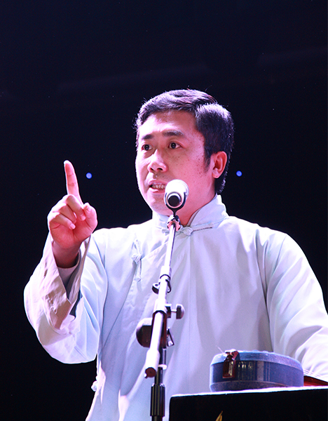 那位艺术家再次登台,接着为我们讲述了评弹的一些历史,并且自然地将下一个节目《庵堂认母》引了出来。