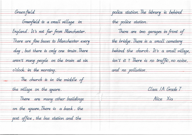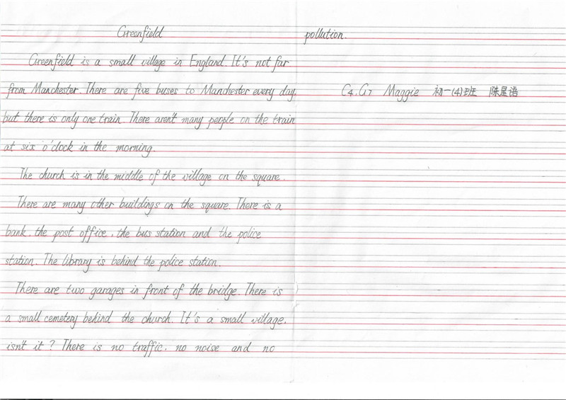 10月26日,初一年级进行了英语书写比赛,同学们用自己最漂亮的书写抄写Greenfield全文,展示了开学以来练习英文书写的成果。