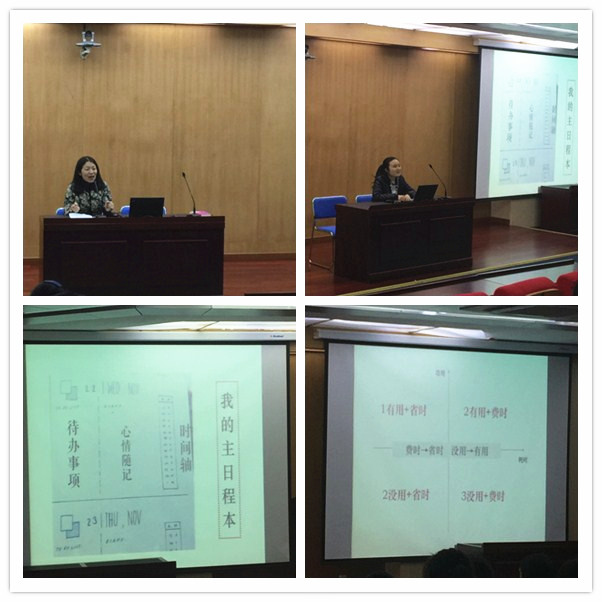 爱好,学习,时间——记初三年级生涯规划讲座 阶段检测刚刚结束,正当许多同学急于寻求各种调整状态或自我提升的良策时,11月20日下午,在林莉老师主持的生涯规划系列讲座上,高三5班的钱文婧为同学们介绍了她课内课外学习的经验方法——“留点时间给自己”,让一些难以平衡爱好与学习的时间分配的同学们收获良多。 首先,钱文婧为我们展示了她小有成就的业余爱好发展:自主建立的微信公众号,有上万粉丝的哔哩哔哩视频网站,除了阅读推荐,学习方法的共享,还有一些校园生活的个人体验与感悟的推送,这让我们不禁佩服钱学姐,在高三繁重的学业压力下,还能在学习与爱好之间游刃有余。 她告诉我们,首先是要正确认识自己的爱好,有所取舍,并将爱好与目标相结合,起到额外的辅助作用。但发展爱好必须有合理的时间规划,以分内工作完成为原则,将所需时间打散,最大化利用平时无所事事的时间。 她也为我们展示了她的日程本。大小内外的待办事项,记录灵感与生活的心情随记,还有每日小结——时间轴,提示我们有大致的时间把握,取得时间安排的主动地位。并且要了解自己的个性,与自己对话,不断地调整、升华、完善自我,为未来作准备。 在最后的提问环节中,她还为一些在学习和生活中存在困惑的同学解答了疑难。 钱文靖作为一名优秀的榜样,值得我们每一位同学学习。相信她精心总结的学习经验,会让不少同学有所启发。 (初三1班 江止善 供稿)