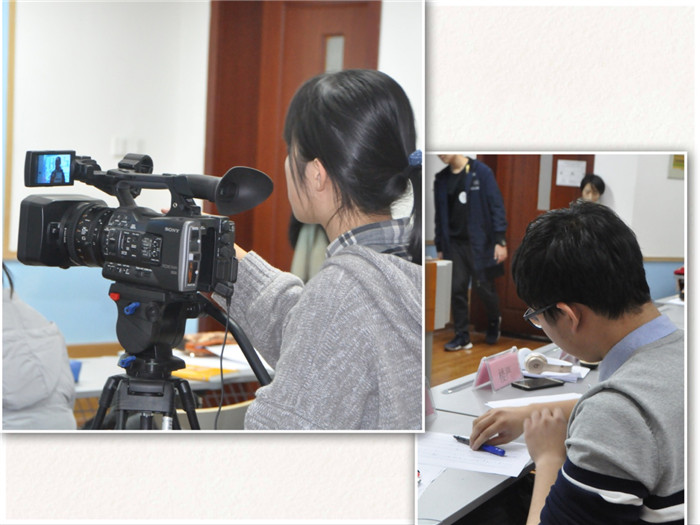 当天傍晚五点左右,海选活动还未开始,微格教室前的走廊里早已站满了前来报名的选手们。有的正戴着耳机认真地小声练习,有的闭着眼一遍遍地记歌词,而更多的,则是拿着歌谱和结伴的同学兴致勃勃地谈笑,气氛轻松而和谐,时不时还会出现一阵欢声笑语。