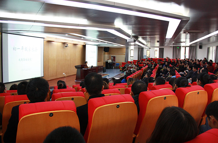 校党委副书记、纪委书记唐玉娣以《人民日报》近日重点报道的“全球政党大会”提出的“构建人类命运共同体”概念作为开端,向全体家长提出了:学校和家长,结成共同体,培养国家栋梁的主题。唐书记向家长们提出了转变角色的要求:由优秀小学生家长向杭外各具特色的优秀初中生家长角色转变,提出新角色的新使命、新征程:关注孩子的兴趣、习惯、方法,帮助孩子学会自我管理、自主学习、延伸交流。家校共同努力,把孩子培养成睿智、阳光、自信、大气,有理想、有才干、有担当的国际化人才。唐书记介绍了学校对初一年级学生参加课外培训班的调查结果,真实的数据引发家长关于理性指导孩子参加课外班的思考,希望家长做好四个方面的配合:家庭德育、孩子学习管理、青春期身心健康教育、家庭文化建设,以及“三会”:会沟通、会关心、会示范。一周五天,请家长放心将孩子交给学校;周末两天,希望家长做好父母角色,留出时间,以平等的姿态、平和的心态,与孩子一起亲子活动、交流与沟通,希望家长与学校,功能互补,共同引导孩子全面、个性、长远地成长。