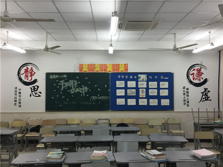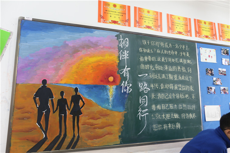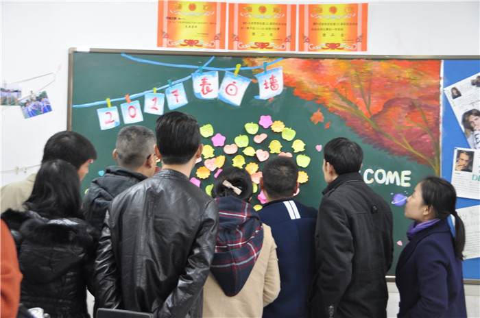 当天的教室被布置得焕然一新,洁白的墙上张贴着我们精心准备的成果。苍劲有力的书法作品,风格迥异的画作,和别出心裁的黑板报,这一切都是为了迎接我们亲爱的家长们。