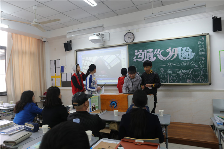 到了下午我们在教室里又开了一次班级家长会,每位任课老师都事无巨细地向家长们介绍着同学们学习的情况,并与家长交流如何更好地培养孩子的学习能力,此时的家长犹如课堂上的我们,目不转睛,侧耳倾听。为了缓解家长会场严肃的氛围,我们还准备了Band Show以及哈利波特配音表演。