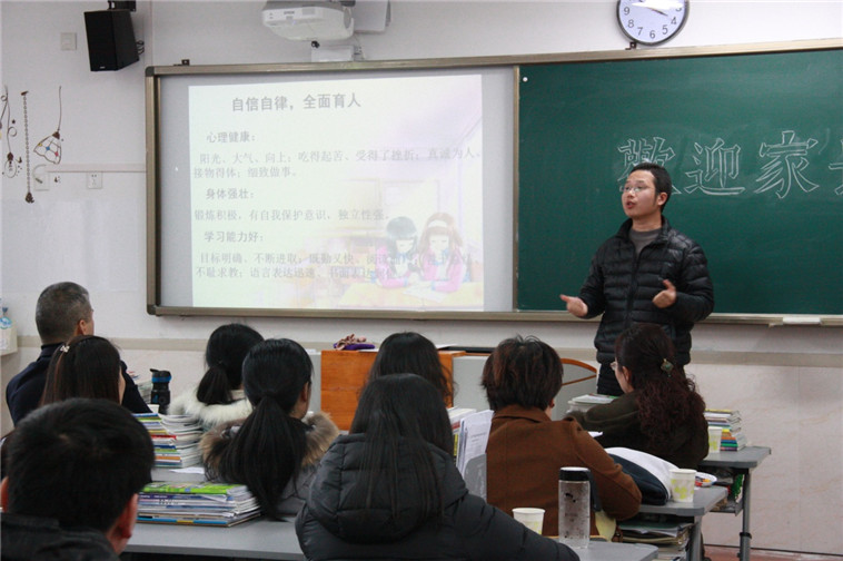 蒋老师向家长们通报了年级的基本情况,再次强调要着眼当下,放稳心态,学好基础知识。