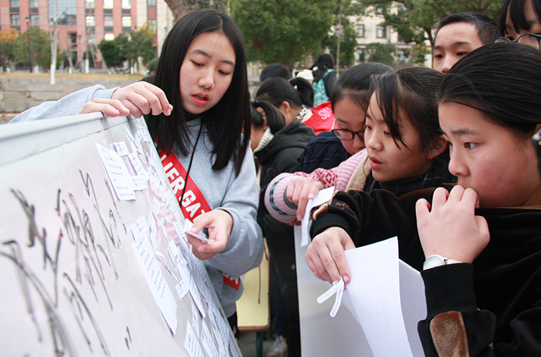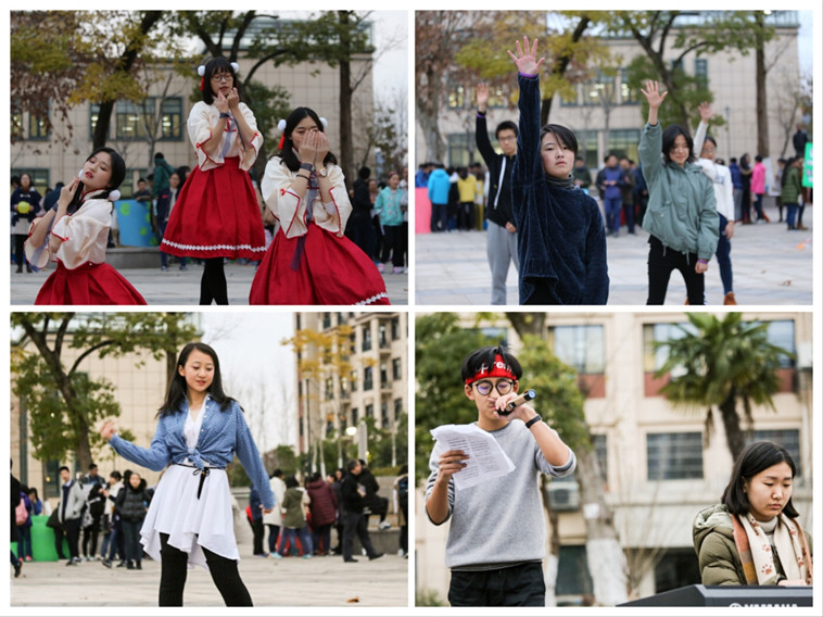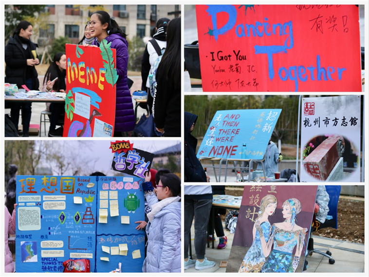 各社团都拿出了百分之百的热情来宣传本社。医学社举行了心肺复苏现场教学;日语社让同学们猜测汉字日语词语的意思;英语戏剧社进行了《无人生还》片段表演;哲学社组织开展了有关“理想国”的讨论……此外,汉风学社与杭州方志馆进行合作,开展了雕版印刷、脸谱绘制和团扇绘制的体验活动。另一边,空白场地则成了NIKI宅舞社、街舞社、拉丁舞社、格子音乐社、英语戏剧社社员一展风采的舞台。