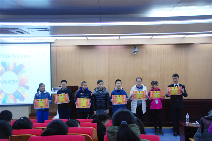 12月28日,初一年级举办了英语语音语调模仿大赛。前一周,各小班都已通过各种选拔,挑选出2位同学,参加最终的比赛。