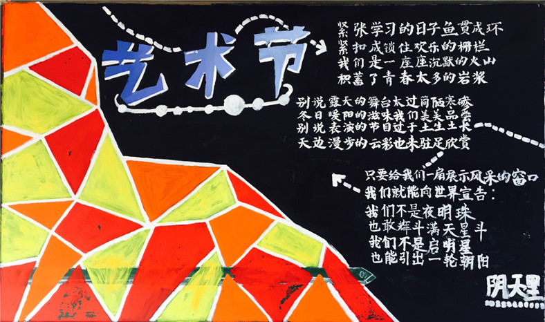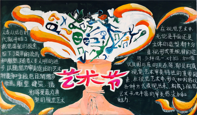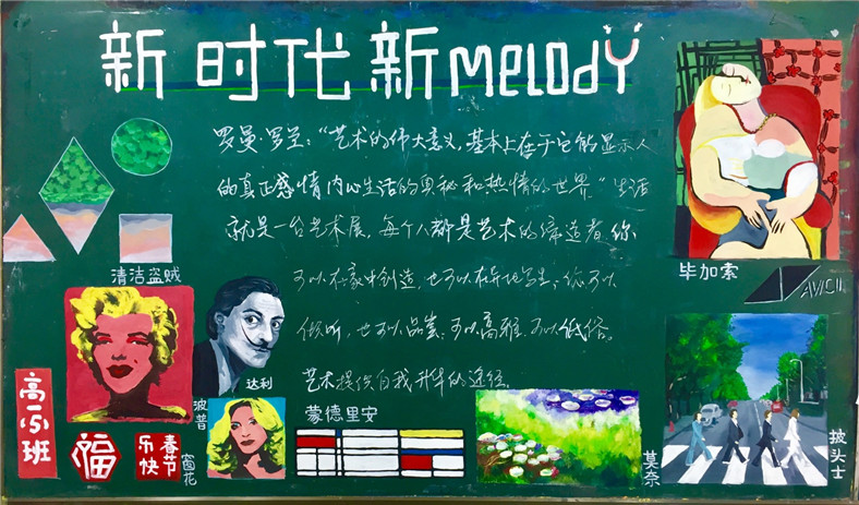 一年一度的艺术节已落下帷幕。艺术节期间,各班级精心准备了班级板报来迎接这场艺术盛宴。各班板报设计紧扣本届艺术节主题——“新时代·新旋律”,不仅体现了同学们对艺术节的热爱与期盼,也展示了同学们良好的艺术素养和审美水平。