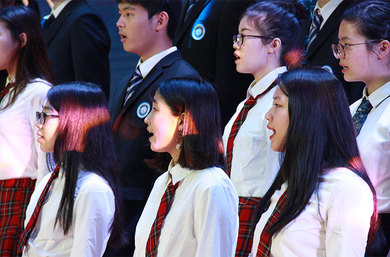 本次合唱比赛有初一初二、高一高二和剑桥高中的所有班级参与其中。合唱曲目五花八门、服装精美、伴奏优良,在场的观众享受了一场视听盛宴。