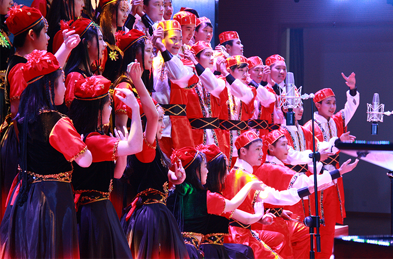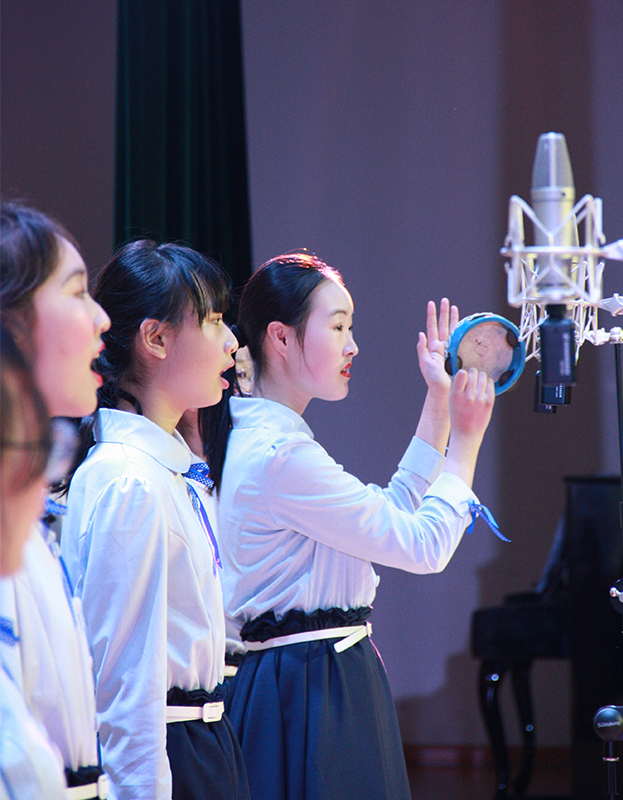 本次初二年级在选曲上很有特色——不但有充满民族风味的《瑶山夜歌》,还有国际性的法语歌曲《vois sur ton chemin》(遥望你的路途)》和俄罗斯民歌《雪球花》及《歌声环绕地球》这一充满世界公民意味的歌曲。