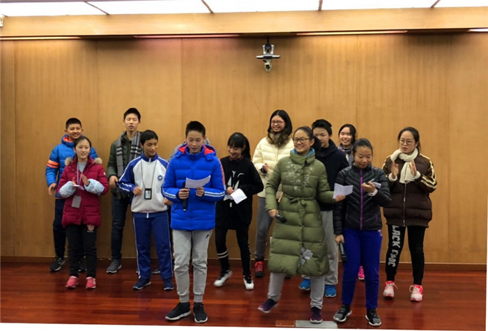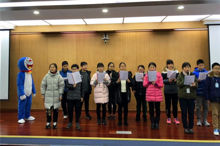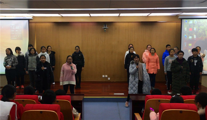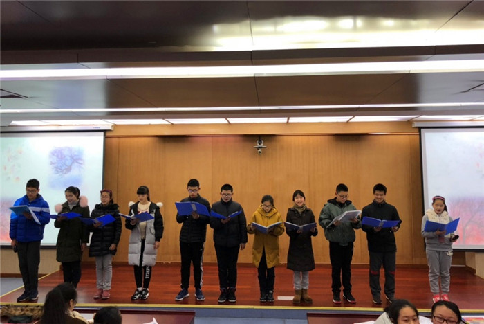 1月4日下午,初二年级在2号楼一楼报告厅举行二外语音展示活动。