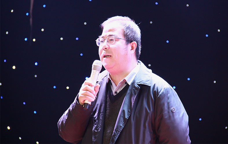 方健文校长致新年贺词。方校长代表学校向离退休教职工表示慰问并致以美好的新年祝福,简要地介绍了过去一年学校的建设发展和所取得的可喜成绩,希望离退休教职工能够一如既往地关心和支持学校的发展,为杭外的明天共同努力。