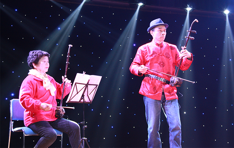 迎新会上,离退休教职工准备了精彩纷呈的表演:独唱、合唱、舞蹈、乐器演奏等,精心编排的节目赢得了场下的阵阵掌声和喝彩声,整个现场暖意融融,气氛轻松。