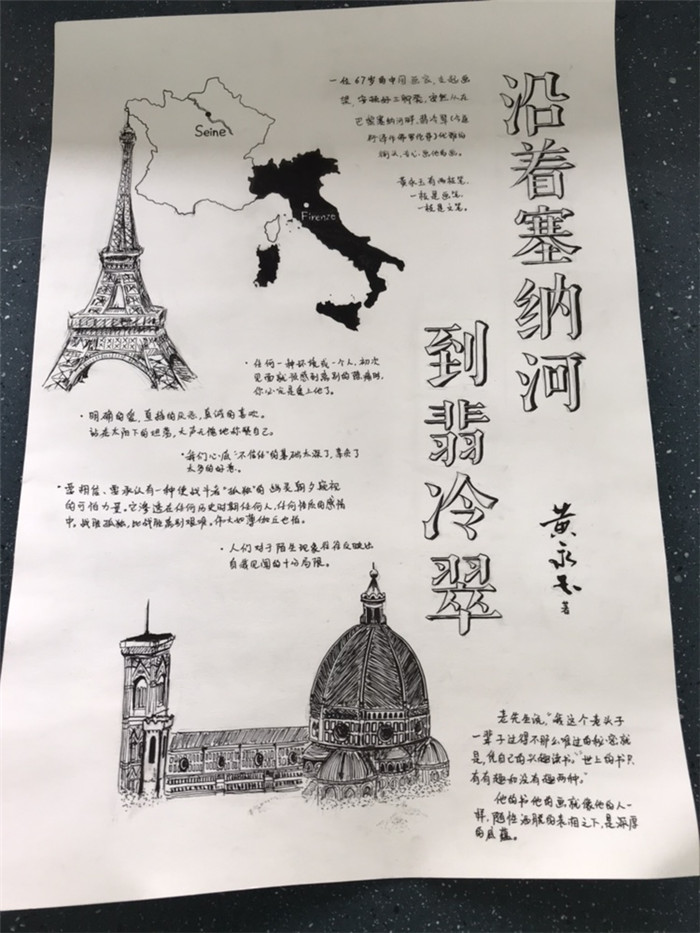 这些书来源庞杂,并不仅仅局限于那一份狭窄的推荐书单。它们可能出现在演讲者的讲稿中,也可能就出现在家里书架的某一个角落。这样丰富的选择,让这些海报既是可以连续欣赏、勾勒书籍全貌的,也可以是开拓你的视野,让更多的经典进入自己的书架之中。你既可以随黄永玉先生《沿着塞纳河到翡冷翠》,在沿途的大好风景中游走自己的笔触,又可以在北岛的“城门”内寻找到属于自己的小小角落;你还能从《解忧杂货店》中烦恼咨询得到共鸣,更能从一个“平”的世界中感受社会发展的快速。若是嫌这些思考太过于繁杂,你大可只站在展板前,静静地欣赏那些极具韵味的海报图画。也许某一个时刻就触动了你,促使你迫不及待地拿起书,继续进入到那个美不胜收的世界之中。