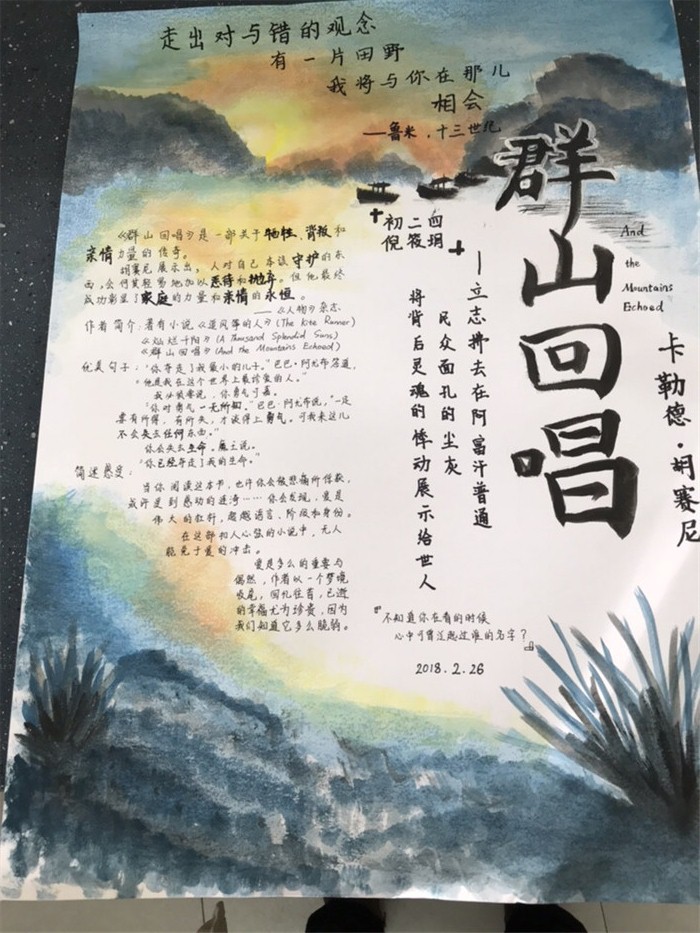 读书,这个词对我们来说绝对不是一项陌生的作业——说它是作业,其实不然。阅读的意义不仅在于自身的沉淀,也在于交流,在于分享。刚刚过去的一个学期,初二年级的每个同学都借着语文演讲的契机,向大家推荐了自己所钟爱的书。寒假中,每位同学又都用心地将自己喜爱的书做成海报的形式,与他人分享从书中汲取到的快乐。3月8日,经过各班推荐,其中最优秀的二十张海报在年级展板上展出。