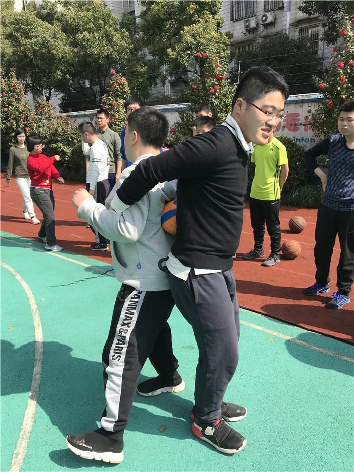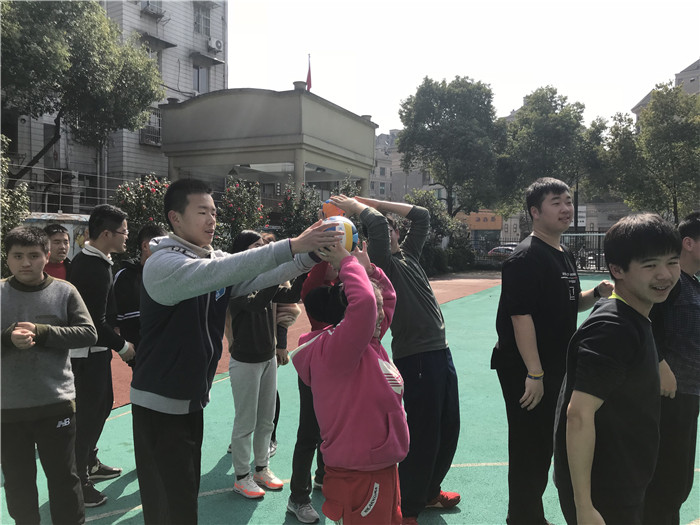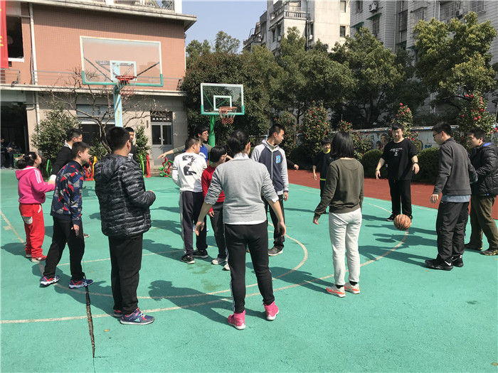 随后,同学们在体育指导老师的带领下来到了操场,与孩子们玩起了游戏。从“打鸭子”到各式各样的传球游戏和投篮练习,还相互切磋了一下篮球技艺,在互动中建立了深厚的友谊。