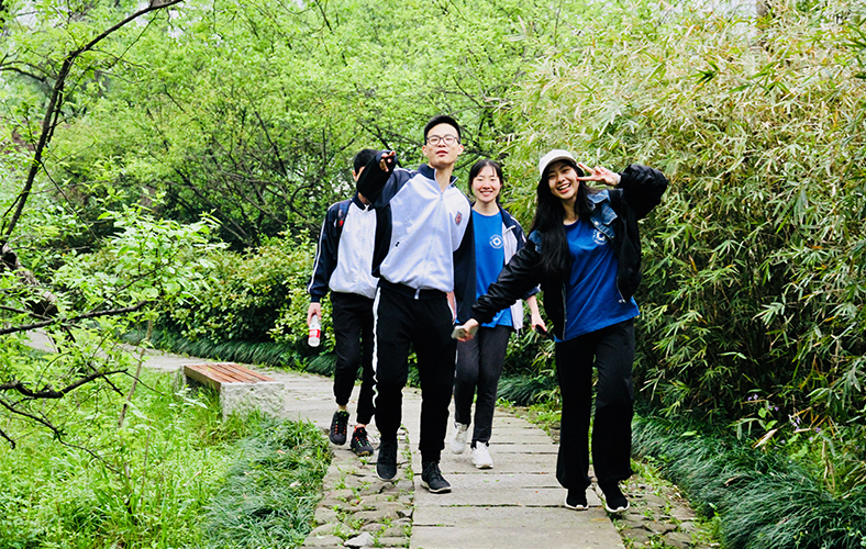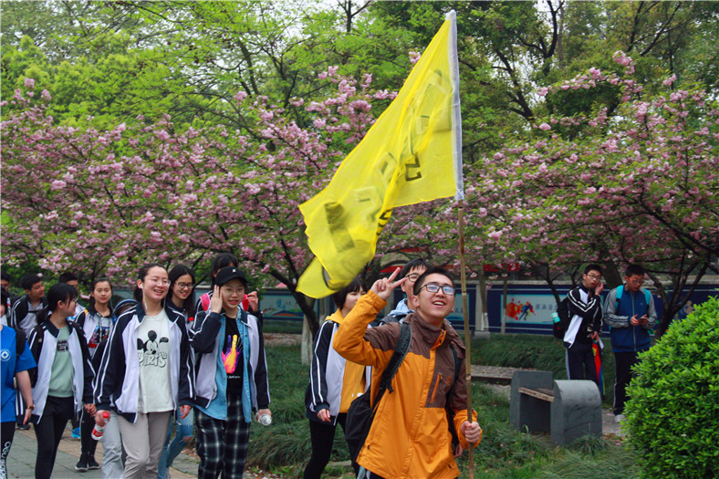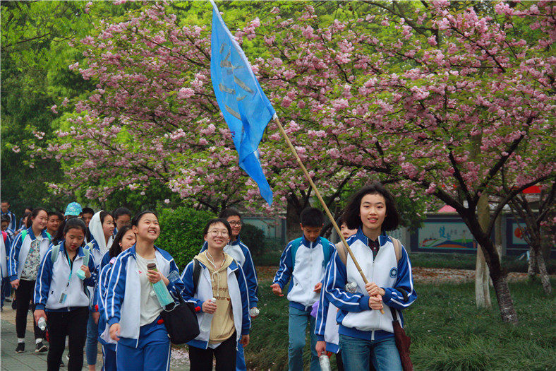 步行的一路上,同学们欢声笑语,看得出来大家都十分开心。伴随着微风,那些开得正旺的粉红色的花被吹落,美不胜收,同时也成为了吸引同学们驻足拍摄的一道风景线。闻着昨日雨后淡淡的泥土气息,看着刚刚长出来的嫩绿的小草和随风飘落的花瓣,同学们领略到了春天的气息和她所象征的勃勃生机。