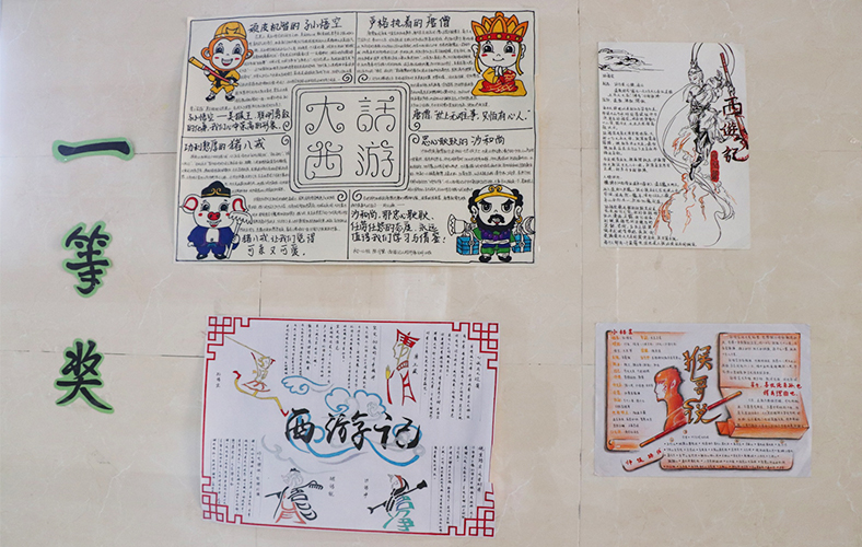 4月初,初一年级的同学们以小报的形式来呈现《西游记》,也算是开启了同学们对古典文学新的学习拓展方式。比起正襟危坐地上课,或者是接二连三的阅读测试,无疑,小报这种集语言文字与美术设计于一身的形式,获得了更多同学的热情投入。制作出来获奖的作品,也让老师同学们刮目相待。