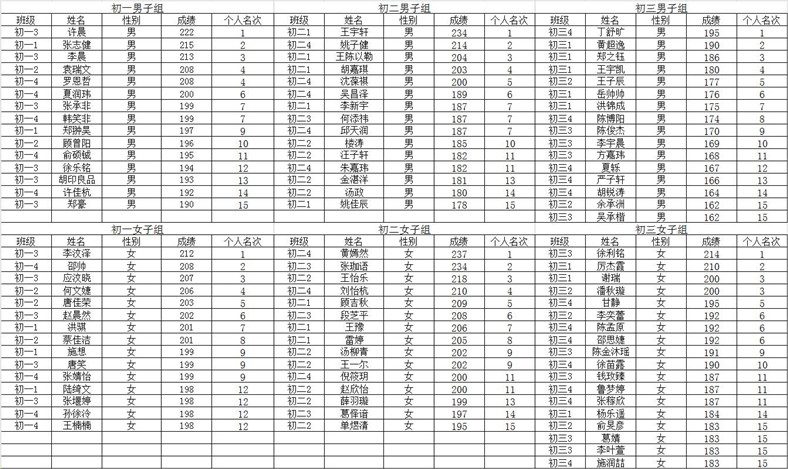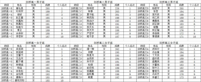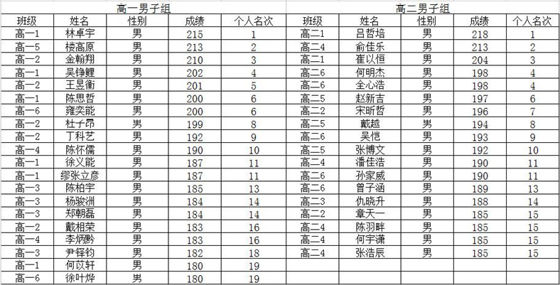 比赛结束后,根据一分钟单跳个数确定个人名次和班级团体名次。