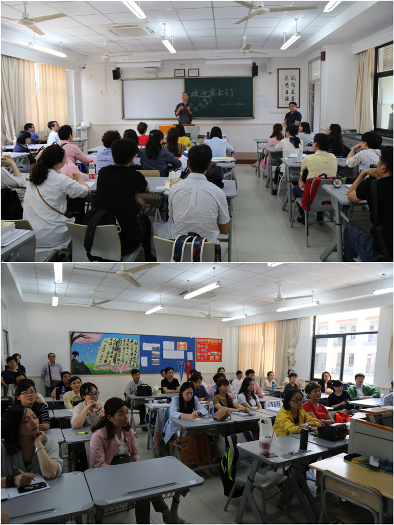 一大早,家长们就纷纷走进课堂,融入孩子在杭外的一天,切身感受孩子们的学习和生活。中午12点40分,年级家长大会在一号楼6楼报告厅召开。校学生处副主任向佐军老师出席会议。会议由初三年级组长李汉清老师主持。