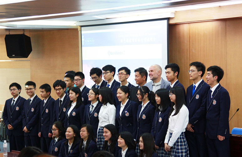 多伦多大学是在全球享有盛誉的研究性综合大学,不仅培养了我们熟悉的白求恩大夫、大山等校友,而且在学术科研等方面为世界做出了巨大的贡献,正如Bernie Kraatz教授展示的智能手机的缩放技术就是来源于多伦多大学。杭州外国语学校是多伦多大学绿色通道项目在浙江的重点合作学校,每年有二十位左右的优秀学子通过绿色通道项目进入多伦多大学深造,杭外学子因在学术、活动能力上和领导力才能等方面的突出表现为母校赢得了赞誉。
