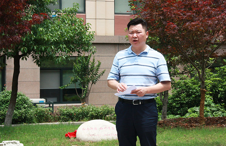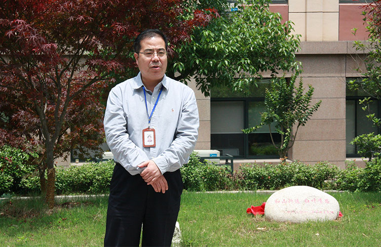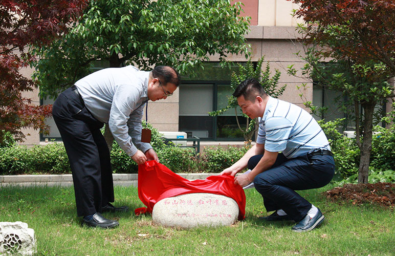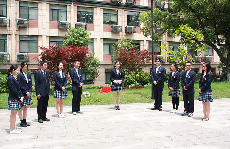 方校长与张校长共同揭开了石刻上的红布,随后张校长发表了讲话。张校长希望杭外学子能如红枫所象征的一样坚毅、开朗,同时坚守“爱国、敬业、诚信、友善”的社会主义核心价值观,不忘母校,心系社会。