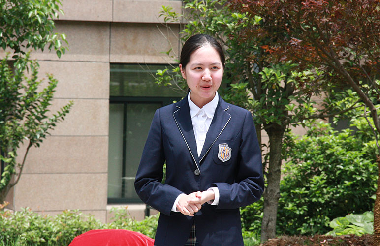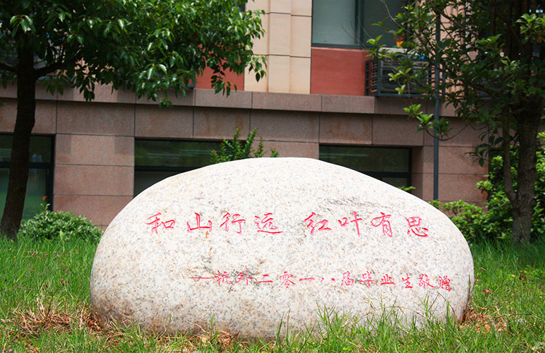 毕业赠礼是三棵日本红枫和一块印着“和山行远 红叶有思”的石刻。虞璧祯同学对赠礼作了介绍,在我国古代诗文中,枫象征着“思念”,与石刻上的字相呼应,我们希望三棵日本红枫代表着18届学子的热忱守护母校。在西方文化中,枫树作为“坚毅、热情、勇敢”的植物,与杭外学子锐意进取、开朗大气的个性品质相符合。