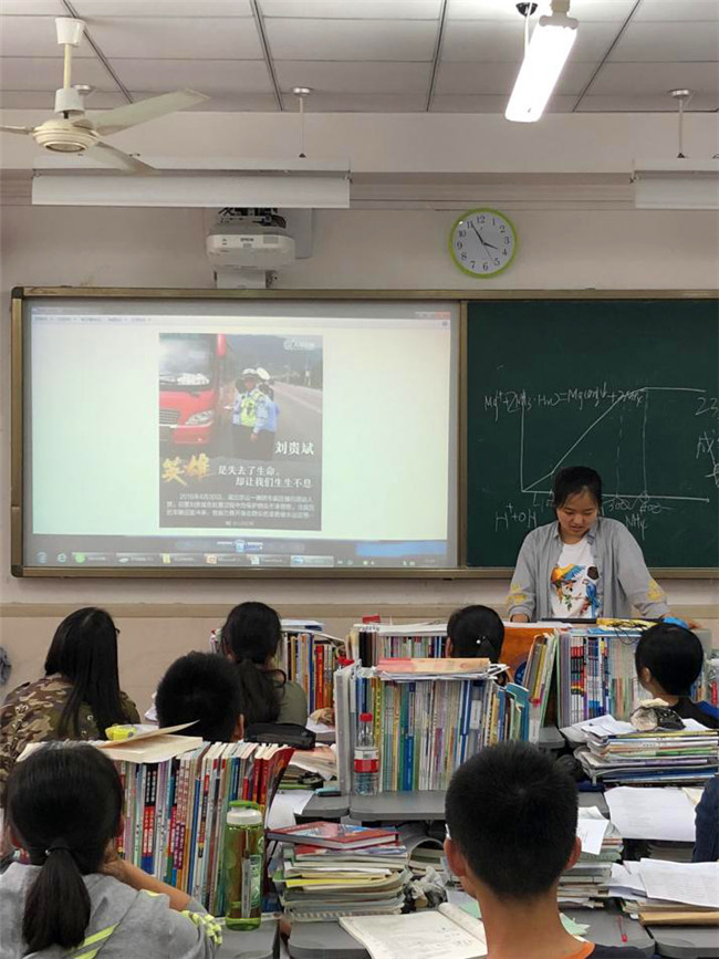班会课的最后,班主任潘老师为此次班会课作了总结。他指出,这个时代不能没有英雄。我们身边的人,也许并不比我们高大,但某一刻,已经让我们仰望。积淀在他们身上的赤子情怀和文化血脉,将助推整个中华民族走向共圆“中国梦”的未来!