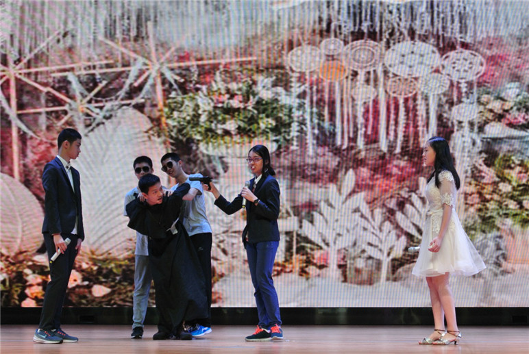 紧接着上场的是一场风格与之迥异的剧——来自初二3班的《Valentine’s Day》。同学们不仅观看到一个演绎得淋漓尽致的爱情故事,还了解到公元2世纪古罗马社会的现状。