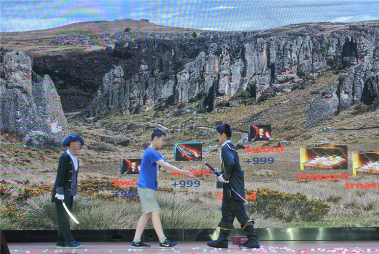 第一个出场的是初二1班带来的《杯酒释兵权》。赵匡胤获得皇权,黄袍加身,巧妙地用一场酒宴来削弱了手下的势力。“Cheer for your contribution!Cheer for our friendship! Cheer for Song Dynasty!”