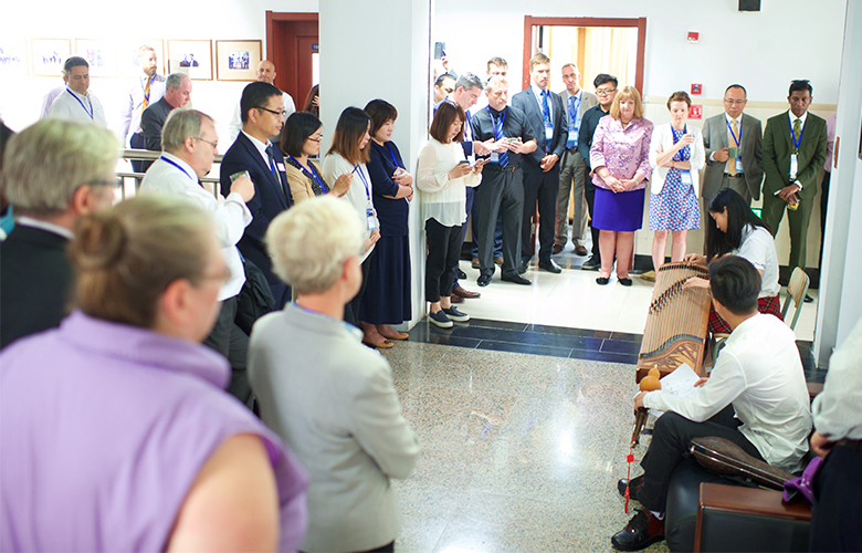 会议期间,学术校长们参观了校园。会议间歇,剑桥高中学生为来宾们表演了精彩节目。