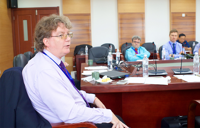 我校剑高学术校长Mathew Thomas介绍了剑桥高中的相关课程开展情况。融合我校严谨的教育管理和剑桥国际课程的科学体系,剑桥高中已培养近千名毕业生。中西融合的课程体系配合专业的升学指导教师队伍,各有针对的项目及现代技术的引入,充实丰富了学生的课程学习,挖掘出学生强大的学术潜能。