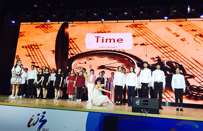 高一1班的主题是时间,朗诵结合舞蹈,让观众们感受到了时间的力量和公正。