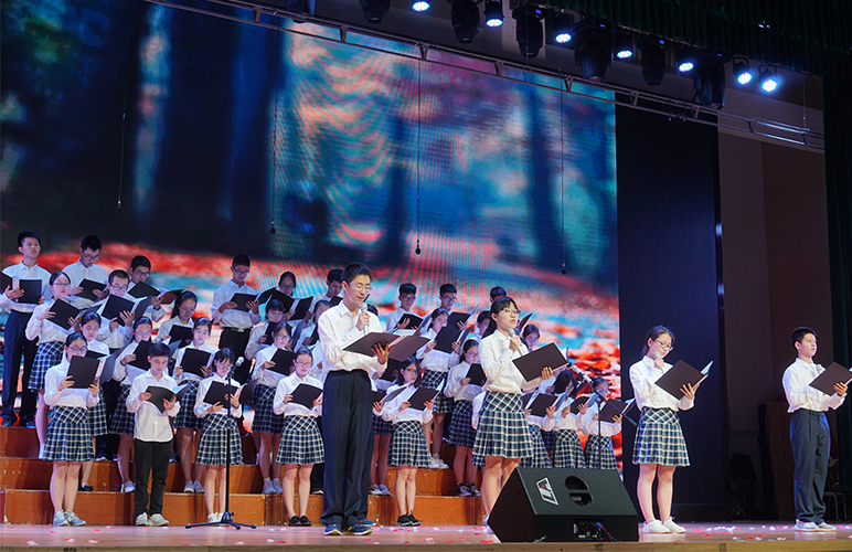 5月25日下午,高一年级在体育馆开展了诗歌朗诵比赛,各个班级事先通过抽签的方式决定朗诵的主题,在舞台上通过多样的形式诠释了他们对诗歌的理解。