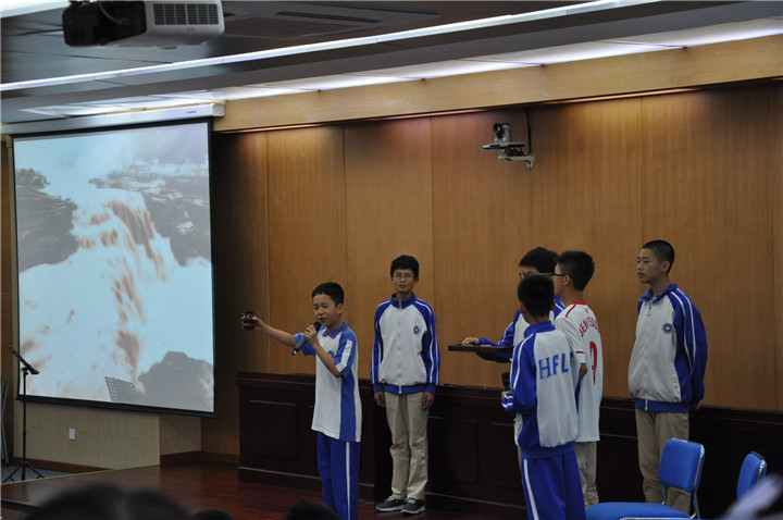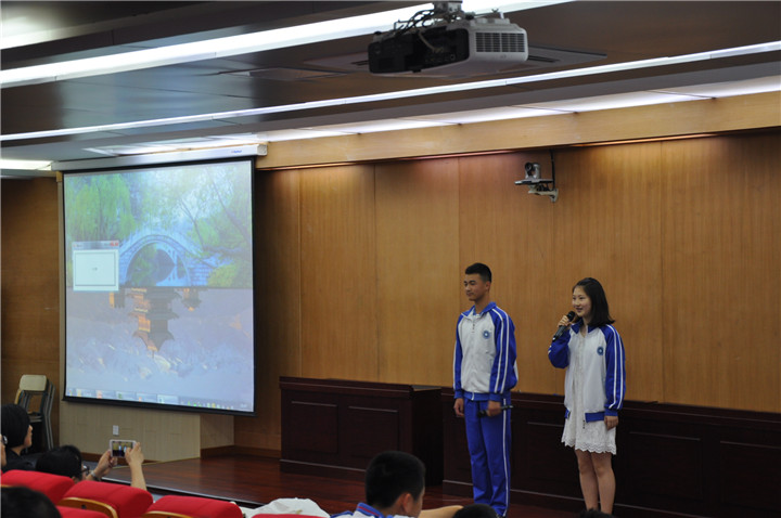如果说李白的豪放像是北方,而与之相对的南方则像是一个温柔的姑娘。在初一4班《我的南方与北方》里,吴东旭代表着刚强与北方,而胡伶子则代表了柔弱与南方。两人声情并茂,诉说着南方与北方的不同。