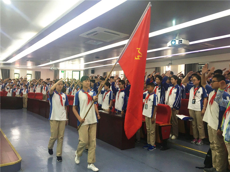 大队长申屠南北代表全体少先队员发言,她表达了自己对童年的留恋以及对未来的憧憬——“故事的结束,也意味着故事的开始,让我们满怀期待地踏上新的征途!”