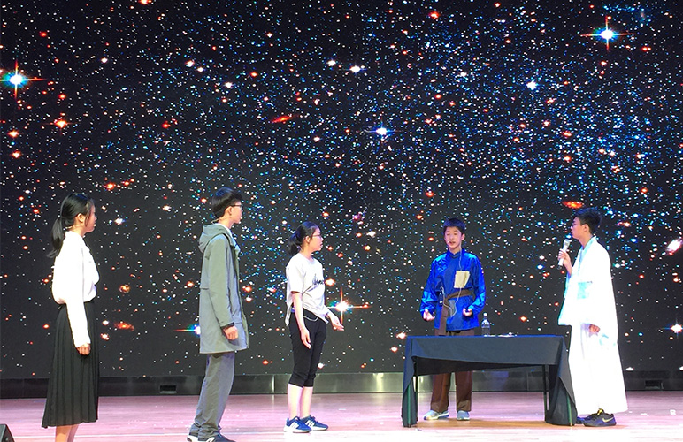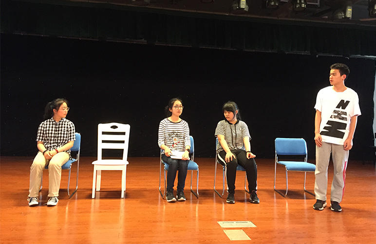最后还剩下一个小问题是台词。男生们都不是很熟练,但组长一声令下“明天早上全部背给我听”,令人惊讶地,第二天早自习前,每一个男生都在组长面前排着队,一句一句地接着词,十分熟练流畅。到了下午上台,他们实现了华丽的转变。