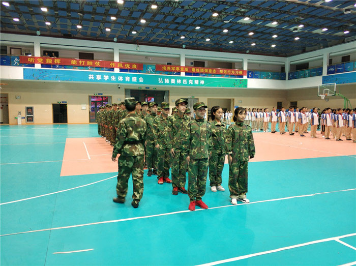 8月25日晚上6:30,我们在教官的带领下步入学校体育馆。晚上7:00,简短而又不失隆重的开营仪式开始。在仪式上,我们聆听了校领导,教官,学生代表的发言,合唱了《团结就是力量》。大家对接下来的军训产生了无限向往。