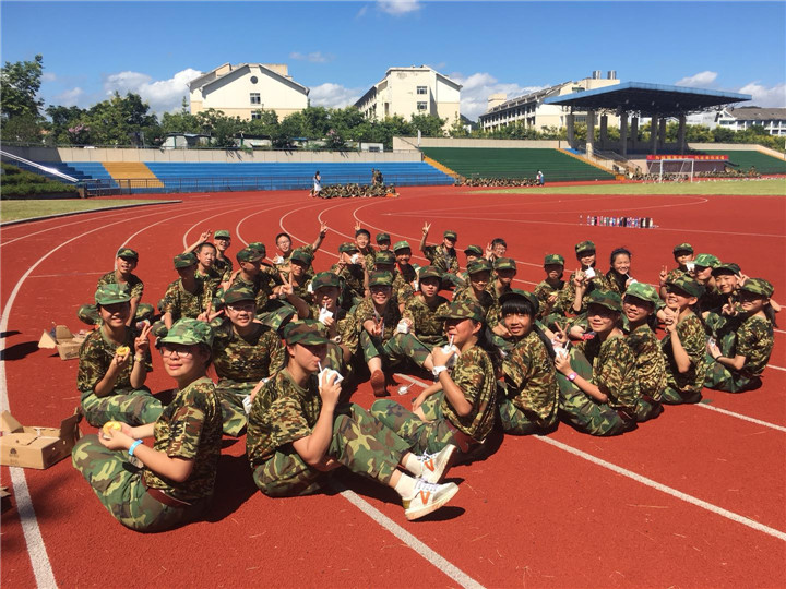 接着我们展开了方阵排练。教官让我们在草坪上排成一个方阵,让内部的同学慢慢摆出一到十的字形,由于人太多了,有时我们会因为指令不清而反应较慢,总教官会显得十分着急。虽然很累,晚上我们还是继续进行着方阵和军体拳的练习。脚底下传来一阵阵疼痛,令人想要放弃,然而没有一个人轻言放弃,没有一个人不大声喊着自己引以为傲的口号。军歌嘹亮,响彻天际,同时回荡在校园中的,是青春的活力和激情。