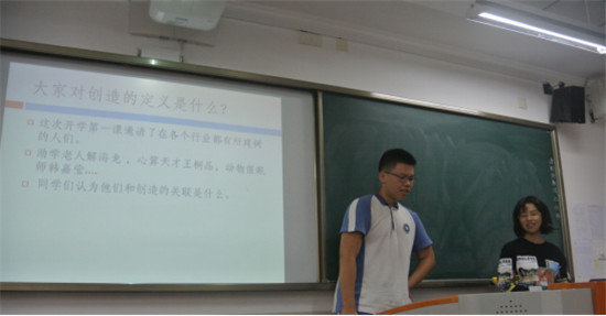 什么是创造?同学们个人对它的定义是什么?是三傻大闹宝莱坞中兰彻对于机械别出心裁的定义?或是舞台上学长巧将尴尬的话筒掉落变成精彩的额外加戏?创造者又有谁?是开学第一课中那些坚持不懈的人们,亦有我们身边的普通人,又或是艺术家、创办学校参与公益的球星,他们都是。
