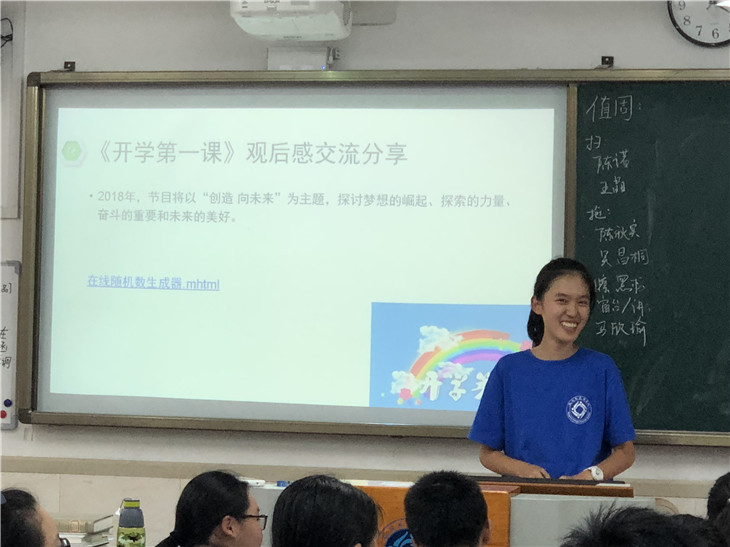 我们通过随机抽取学号的方式,请同学发言,大家逐一表达了自己的看法。关于军训,同学们纷纷表示军训期间,虽然很辛苦,但是大家都挺过来了,也磨练了意志品质,相信我们在以后的学习生活中也将不畏艰难,勇往直前,我们一定会变得更加强大。关于《开学第一课》,有同学表示,主题契合时代,内容高端,教育性深刻。同学们发言结束后,班主任老师也表达了他的观点。