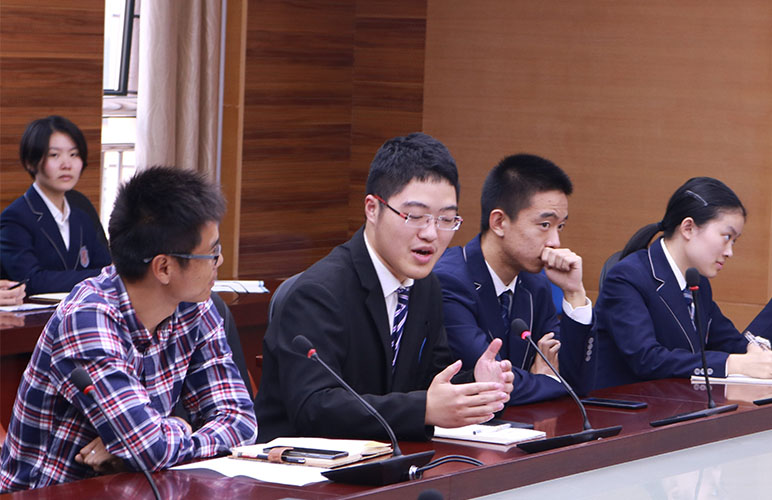 我校张俊峰副校长致欢迎辞并讲话。张校长介绍了我校学生会一直以来以学生成长为重,采取多种形式,搭建平台鼓励学生自主发展的根本理念。学生会会长黄一宁简要介绍了学生会的机能以及学生会的选举机制。在秘书处负责人邓晨钰介绍了学生会的各种活动及管理方法后,各部门负责人深入细致地介绍了人员分配、日常职能、往期活动以及奖惩制度等。
