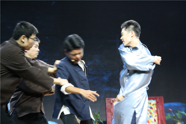 在自己看表演的时候我才明白杨老师说的,“话剧的核心就是对于台词的把握”,确实,当在台上能够以话剧式的语调把握住自己的台词之后,观众们才能听得舒服。这对所有的演员来说都是一个十分苛刻的要求,因为只要有一个人、一句话不够到位,在看的人心里就像是一个踩上去该是踏实的地方突然变成了一个空洞,叫人十分难受。正是因为这样,我才十分感谢导演们,他们以自己的最大努力帮我们做着纠正,不然的话,这一场话剧最后可能就成了一出“闹剧”。