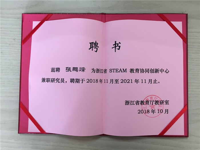 9月,由教务处牵头,我校成立STEM教育项目工作小组,在初二年级组长及各班主任的全力配合下,开办了无人机设计飞行训练营,通过开设无人机操作、拆解、设计、组装等课程以及相关实践活动,培养学生的创新意识和动手能力。我校的项目平移工作扎实开展,成效明显,在省教育厅组织的汇报活动中被评为A等级,并在论坛上作典型发言。张鹏峰老师还被聘为浙江省STEAM教育协同创新中心兼职研究员。