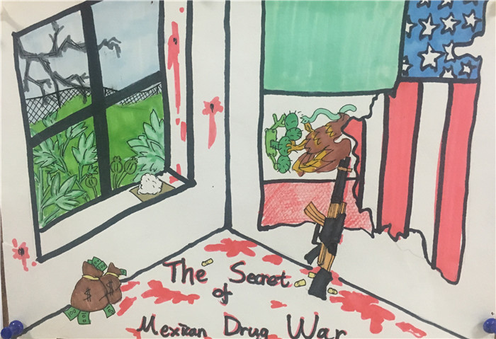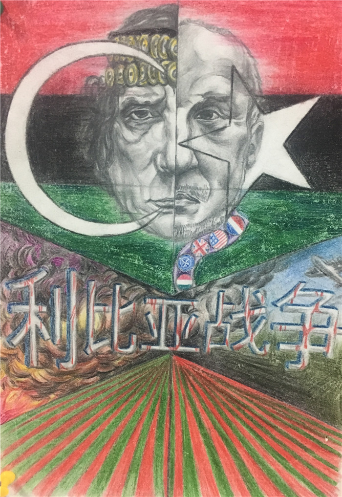 棺材,覆盖着儿童的脸庞。他们是在战火中牺牲了吗?他们和我们一样正值青春的年华,却只能被迫带着对世界无限的好奇与不舍,长眠于一具具冰冷的棺材之中。然而他们甚至连死亡,都不能享受平静。据我所知,乌鸦是一种以腐烂尸体为食的不吉之鸟。而书本,这一摞摞叠在我们每一个学生面前的书本,不正是孩童们的象征吗?被乌鸦食入内脏的究竟是什么?会是那些连棺材都无法覆盖住的孩童的尸身吗?冷酷无情的战争犹如一头暴躁猖狂的野兽,本应该活得像花朵般绚丽的孩童,此时此刻,却都成了被命运扼住喉咙的人。谁也不知道野兽哪天会暴怒,因为他只要轻轻动一下手指就能毁掉一整捧花束。狂人,又是谁?会是那些依然为了祖国奋斗在战场第一线的士兵吗?可是这漫天飞扬的尘土,比曾经肆虐北京,造成无数呼吸道疾病的PM2.5粗大无限倍的岩石,都在滚滚硝烟中被吸入了他们的肺。狂人,在挣扎着呼吸。这,就是二十世纪,叙利亚的二十世纪。