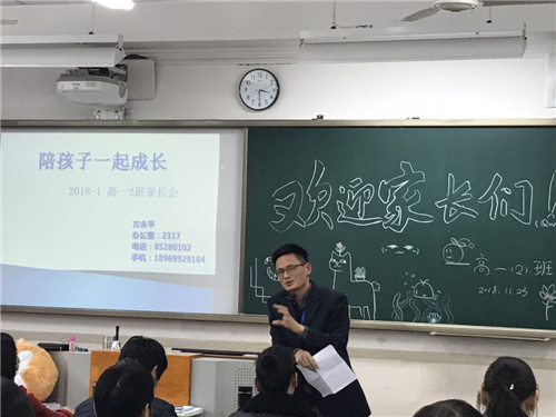 11月23日下午,我校高一年级家长会在1号楼六楼报告厅举行。副校长吴锋刃、学生处主任朱伟杰出席会议。会议由年级组长李汉清主持。